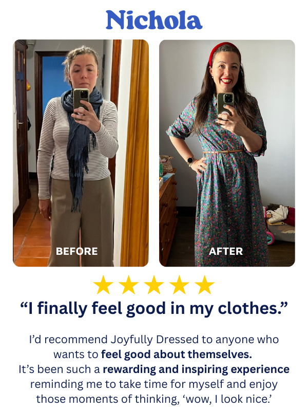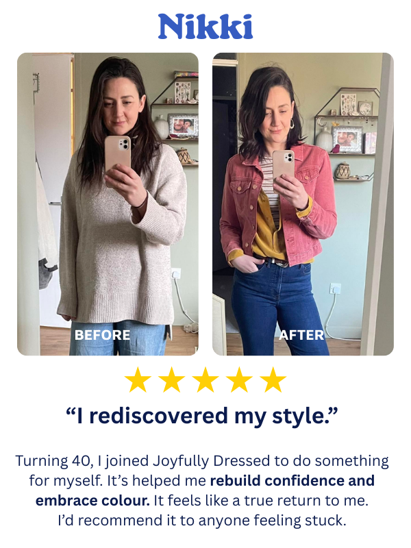 Joyfully Dressed is a practical style membership that helps you understand your body shape, discover your best colours, and create outfits that work for your real life.