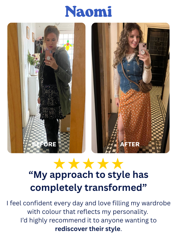 You stop second-guessing your outfits. You know what suits you and why. You wear colour confidently instead of hiding behind black. Your wardrobe works together. Getting dressed feels easier.